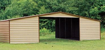 Loafing Sheds are the newest addition to the Eagle Carports Horse Barn family! We offer options to close off sections for Tack-Rooms and can add Garage Doors, Walk-in Doors, and even Windows! You may also choose to add a 3' overhang for additional coverage!