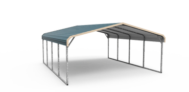 Boxed Eave Style Carport Covers have HORIZONTAL panels on the roof, and feature a 6" overhang all the way around the structure. (The ridges of the steel will run from the front to the rear, and water will drain towards the front or rear of this roof.)